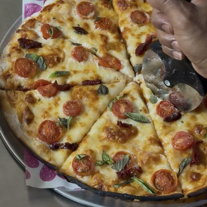 Queso mozzarella, albaca, jitomate deshidratado y salsa de tomate