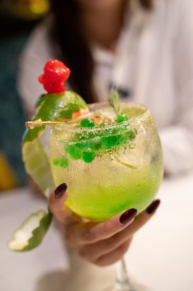 Refrescante y delicioso coctel de kiwi amacerado con notas de limón y hierba buena, te darán una sensación de frescura inigualable.