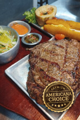 Bef Chorizo de 350 gramos, dorado y jugoso, acompañado de ensalada fresca, chimichurri, papa con sour cream, maduro con queso …