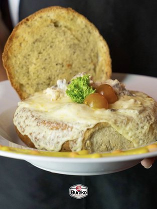 Especialidad del chef, Para los amantes de los buenos sabores, una deliciosa combinación de quesos con una salsa de pollo al vino blanco donde nuestro exclusivo pan de corteza dura le darán el toque secreto a esta mágica receta.